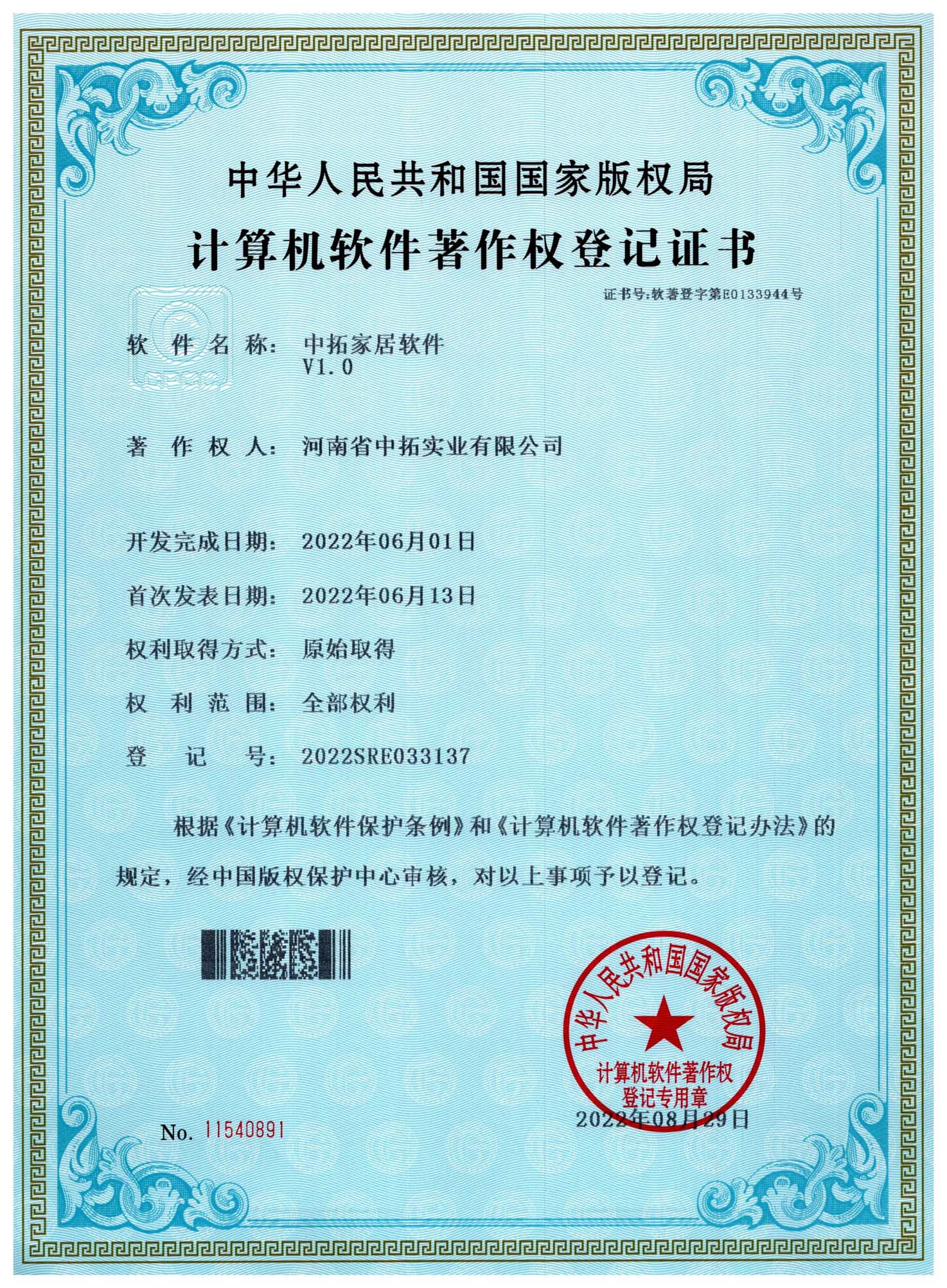 • 河南晨鵬實業有限公司 軟著證書
